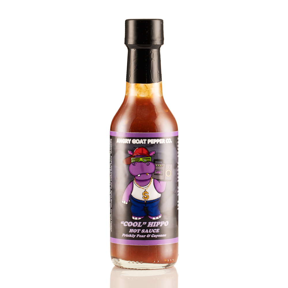 Cool Hippo kombinerer den unike smaken til prikket pære kaktus med søtheten til agave frukt, jordbær, og rørsukker. En mild varme fra cayenne og jalapeno pepper, med en liten splash med sitron og lime, gir denne sausen en utrolig smak, med bare litt styrke.