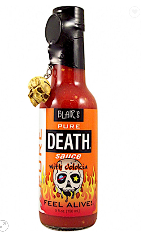 Dødssaus er naturlig. En varm saus så ren, det er det vi måtte kalle den. Fire bokstaver i Pure, fire ingredienser i Pure. Perfekte porsjoner med oransje habaneros, Naga Jolokia, eddik og bakt hawaiisk rødt salt gjør Døden til den mest naturlige tingen noensinne … så vel som din sannsynlige avhengighet av den. Feel Alive med Blairs Pure Death, og dens universelle smaksappell. Selvfølgelig vil du bruke det på alt … du vil lure på hvordan du noen gang har spist uten det!! Å oppleve denne døden er rent gledelig.