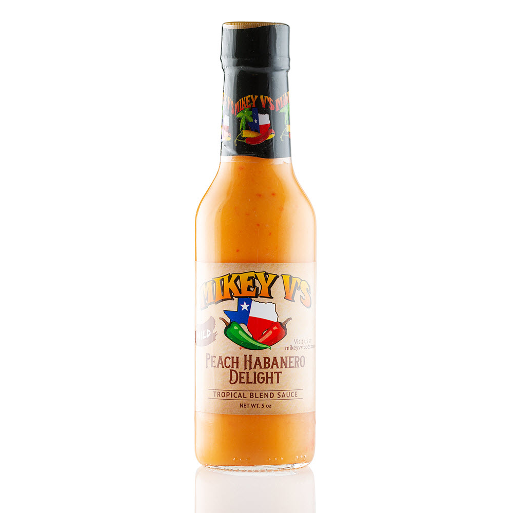 Første plass vinner i 2013 Austin Hot Sauce Festival. Peach Habanero delight er en tropisk blanding med milde pepper, rød løk, og habanero, perfekt blandet med fersken og ananas, for naturlig sødme, ekte øysmak.
