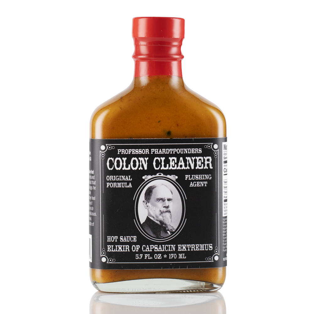 Professor Phardtpounders Colon Cleaner Hot Sauce – Elixir of Capsaicin Extremus er en utmerket kreasjon av en varm karibisk sennepssaus. Den gir varme og en uforglemmelig øysmak til måltidene dine, for ikke å si noe om latteren og latteren det vil gi når du setter en flaske på bordet. Du må ha en flaske i samlingen til enhver tid.